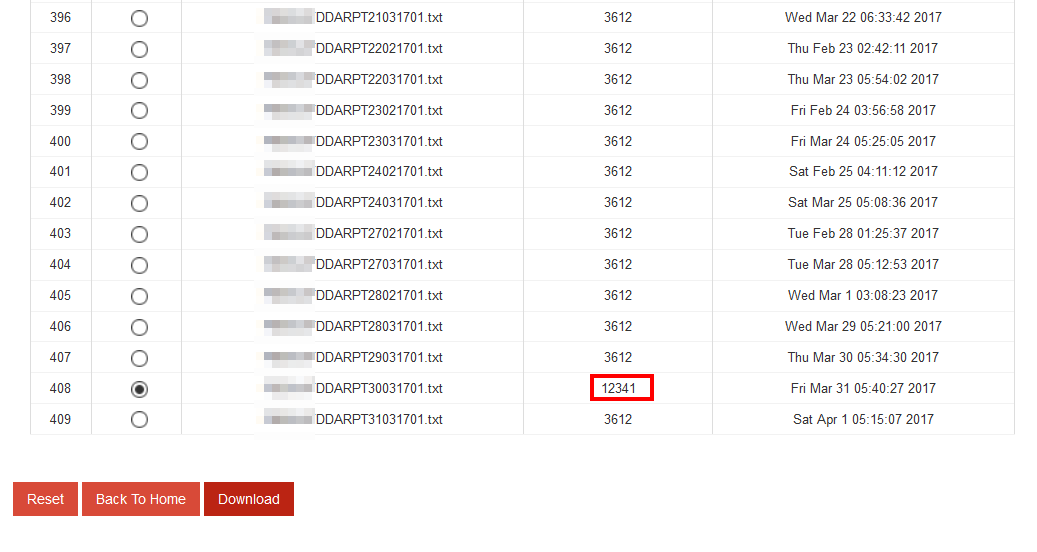 Locate and Download DDA Report Status file ( PBBABCDDARPT(DDMMYY)01.txt file that file size larger than 3612 bytes ). (ABC – Merchant’s Name)