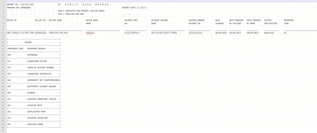 The reports consist application status of Direct Debit Authorization (DDA) form that completed the approval review process.